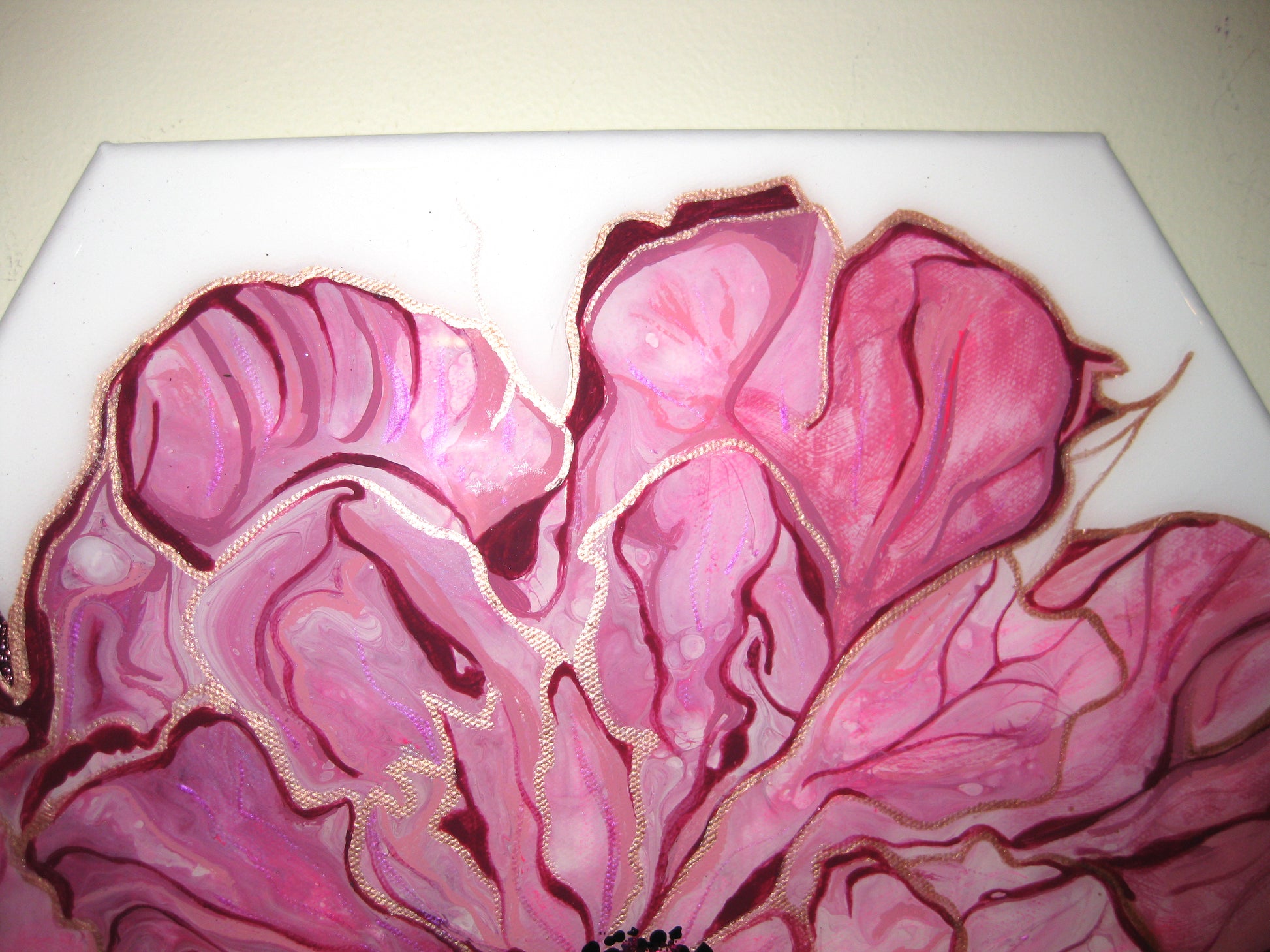 "Pink Peoni" - 14" Hexagon Acrylic Painting